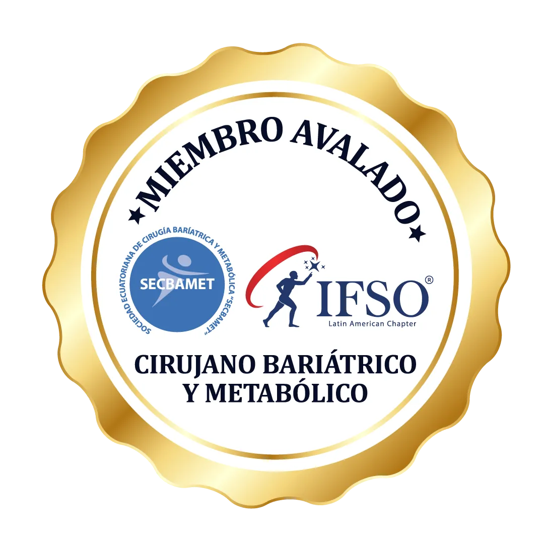 El Dr. Cristian Castillo se enorgullece de ser un miembro avalado por la Sociedad Ecuatoriana de Cirugía Bariátrica y Metabólica (SECBAMET) y la Federación Internacional para la Cirugía de la Obesidad y Trastornos Metabólicos (IFSO). Estas prestigiosas instituciones respaldan su compromiso con la excelencia en la práctica de la cirugía bariátrica y metabólica, promoviendo la investigación, la educación continua y el intercambio de conocimientos en el campo de la obesidad y sus tratamientos.